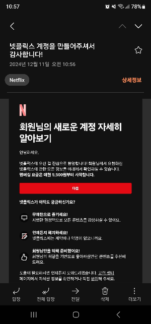 한국인이 젤 좋아하는 넷플릭스를 무료로 이용할 수 있게 된건 큰 혜택이 아닐까 싶습니다.