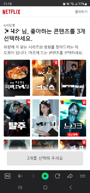 좋아하는 컨텐츠를 3개 선택해 줍니다.