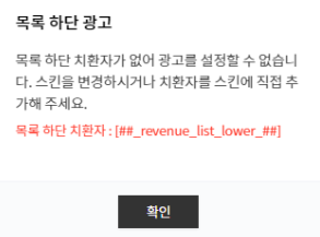 이는 내 스킨에 [목록 상단] [목록 하단]광고를 표시 할 수 있는 코드가 없기 때문입니다.