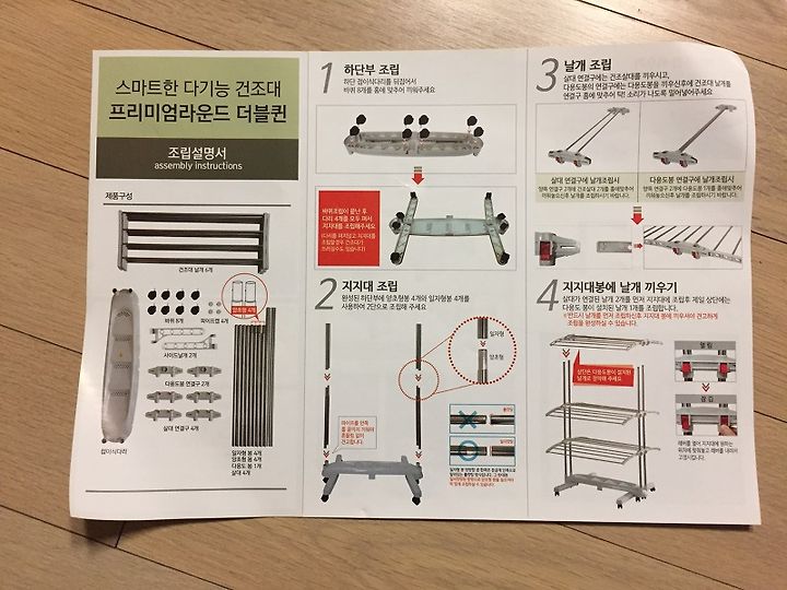 실대 연결구(파란원 부분) 결합 후 건조대 날개를 부착하라고 되어있는데요.