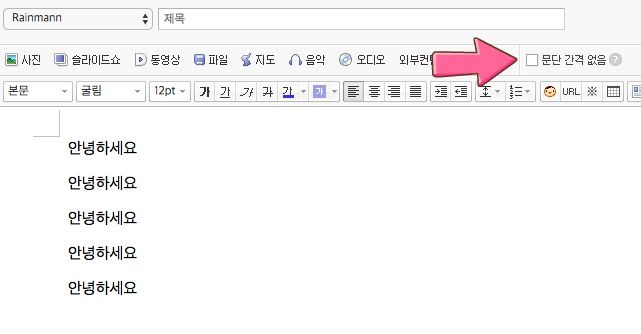 문단 간격 없음 체크응 해제! 하니