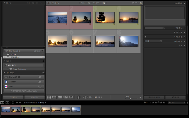 레이팅과 마찬가지로 사진마다 컬러라벨을 입힐 수 있습니다.