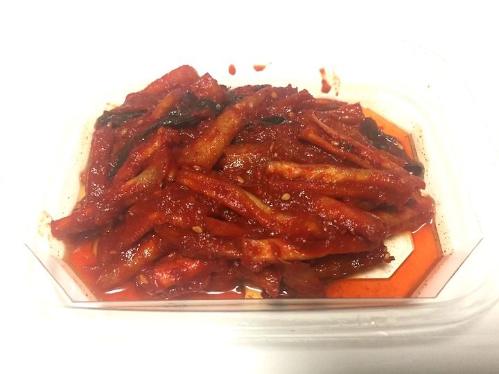 무말랭이인데 오도독 씹히는 맛과 감칠맛이 좋습니다.