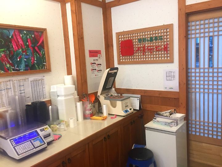 안에서 직접 요리를 하시고 저울로 용량을 재며 담을 수 있네요.
